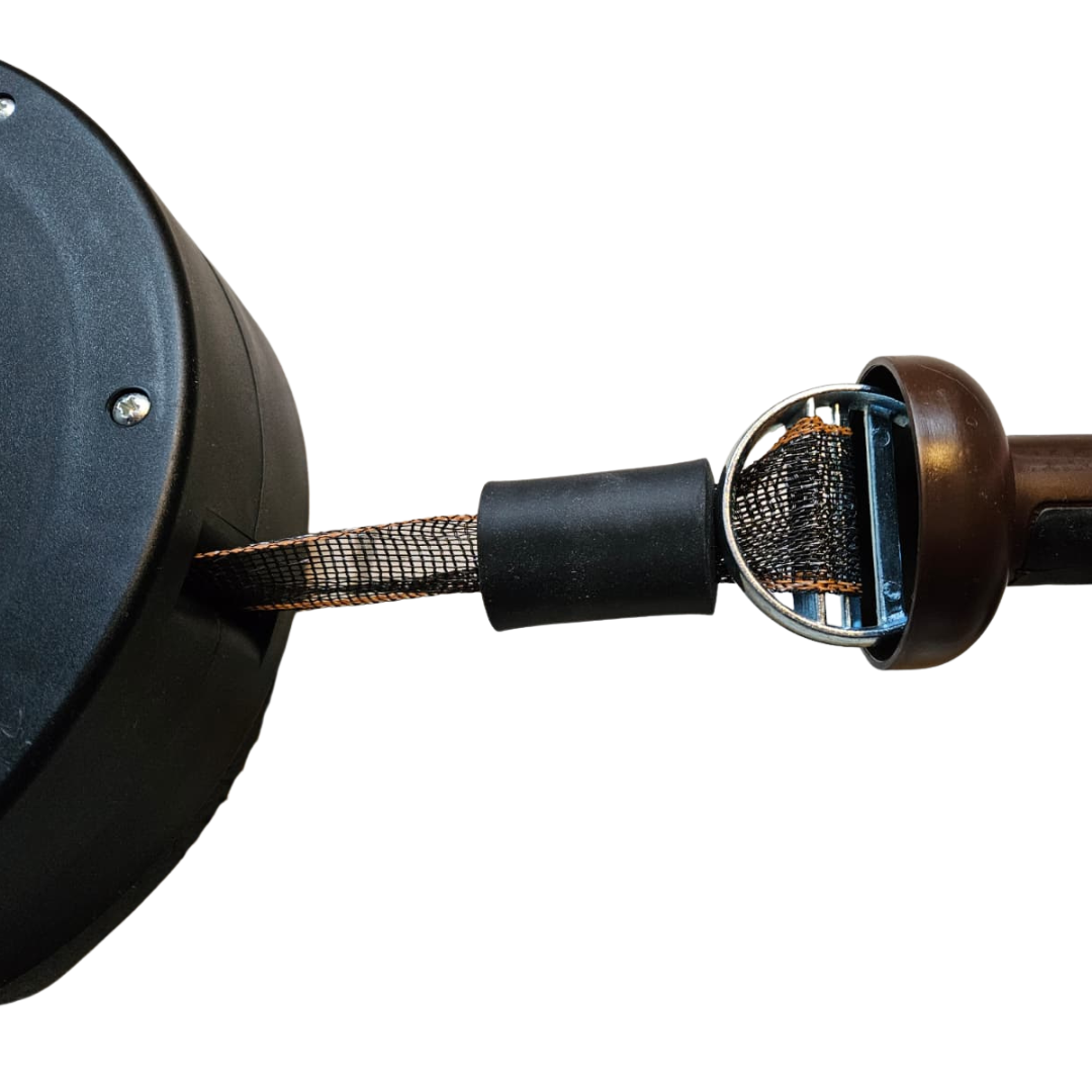 • Rolt af en op met een veer en houdt daarmee het lint veilig op spanning.