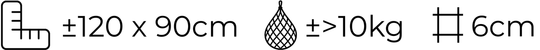 - Zeer ruim formaat: ±120x90cm voor 10+kg hooi.