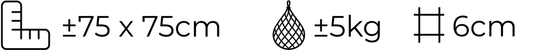 - Fijn formaat: ±75x75cm voor ±5kg hooi.