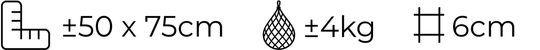 - Fijn formaat: ±50x75cm voor ±4kg hooi.