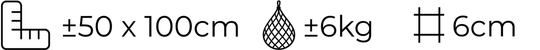- Fijn formaat: ±50x100cm voor ±6kg hooi.