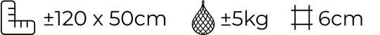 - Leuk formaat voor variatie: ±50x120cm voor ±5kg hooi.