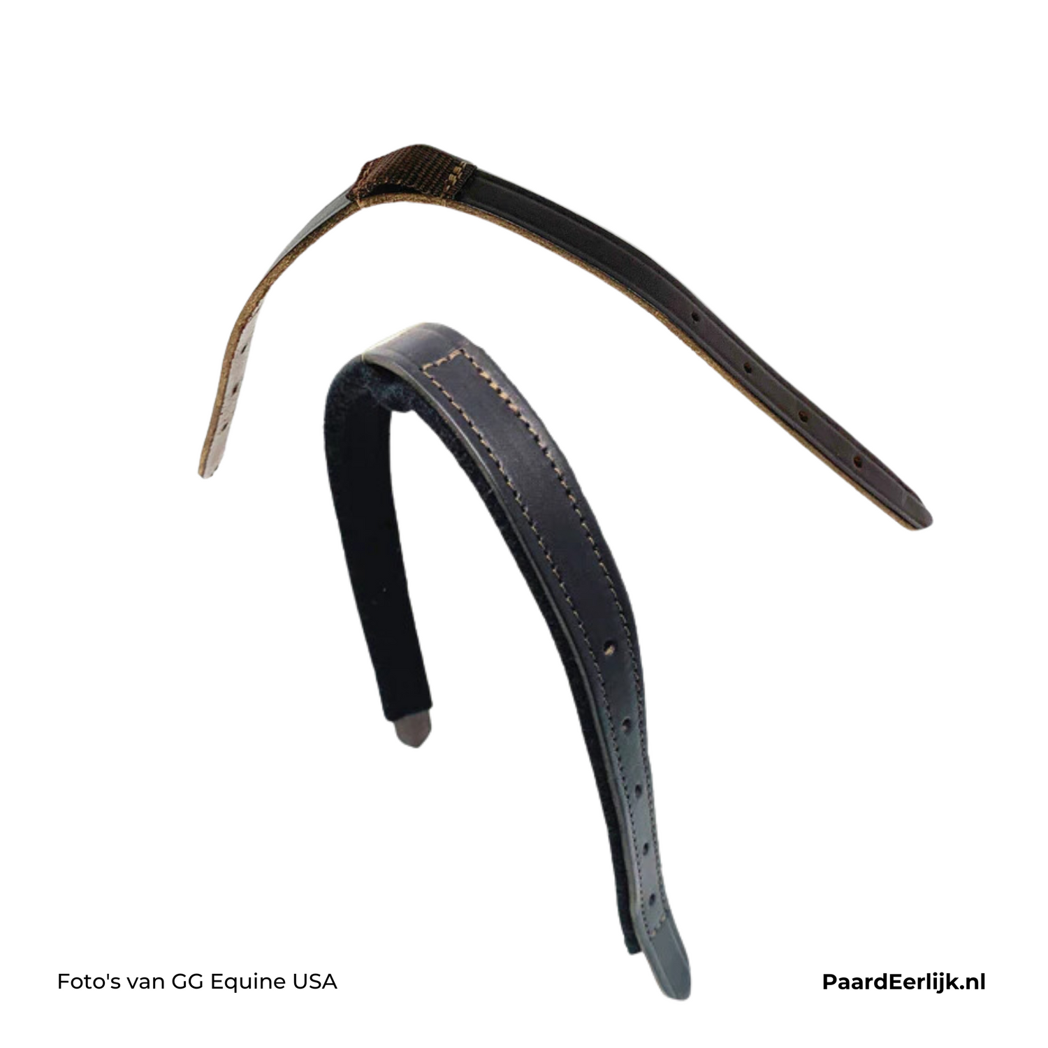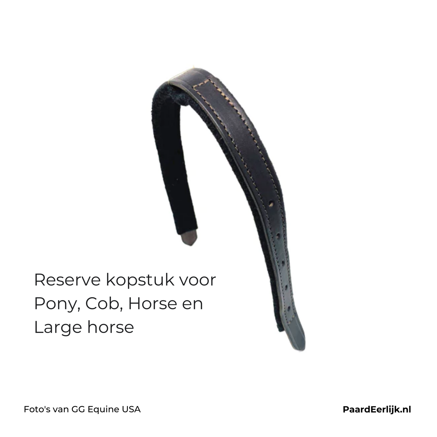 Kwalitatief hoogwaardig lederen kopstuk ter vervanging van het kopstuk van het GG Equine Graasmaskerhalster Deluxe. Maat Horse is onderlegd met fleece met een uitsparing in het stiksel voor de extra losse neusriem. Maat pony beschikt over een klein lusje waardoorheen een extra neusriem kan worden bevestigd.