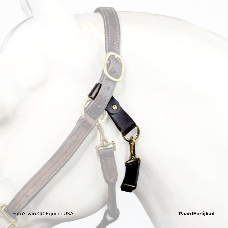 Een handig hulpmiddel om te voorkomen dat je paard ongewenst het halster of graasmasker afkrijgt. Let op: halster wordt niet meegeleverd.