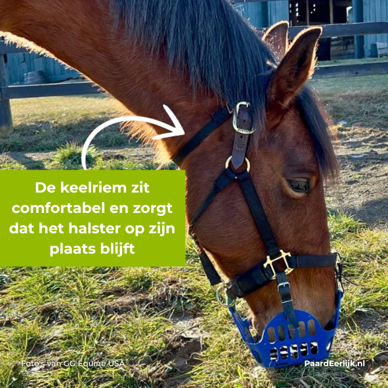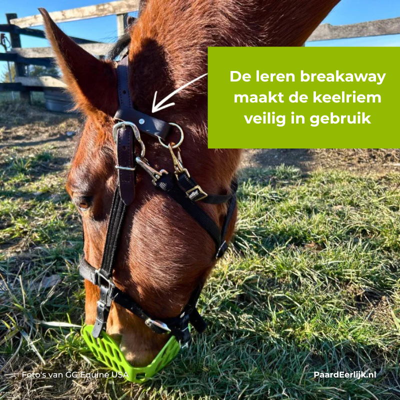 Krijgt jouw paard ook zijn graasmasker gemakkelijk af? De Houdini Helper Stay-Put keelriem is speciaal ontwikkeld voor paarden die niet zonder graasmasker kunnen maar je telkens te slim af zijn. Deze eenvoudige maar doeltreffende oplossing helpt om halsters en graasmaskers veilig op hun plek te houden, zonder ongemak voor je paard.