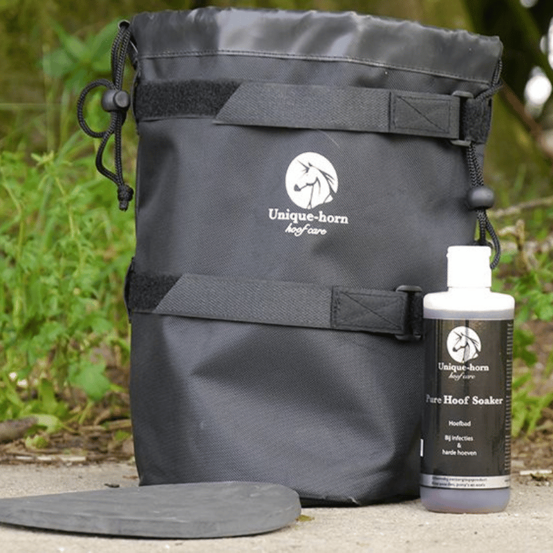 Met deze sterke hoefzak van Unique-horn Soaker kun je de hoef van je paard eenvoudig weken en is in te zetten bij hoefzweren, verwondingen, kneuzingen, schimmelinfecties, White Line disease en ernstige rotstraal. Met deze Unique-horn Hoof Soaking Bag wordt het weken van de hoeven van je paard een stuk eenvoudiger, geen gedoe meer met omvallende emmers en dé oplossing voor paarden die het moeilijk vinden in de emmer te blijven staan.