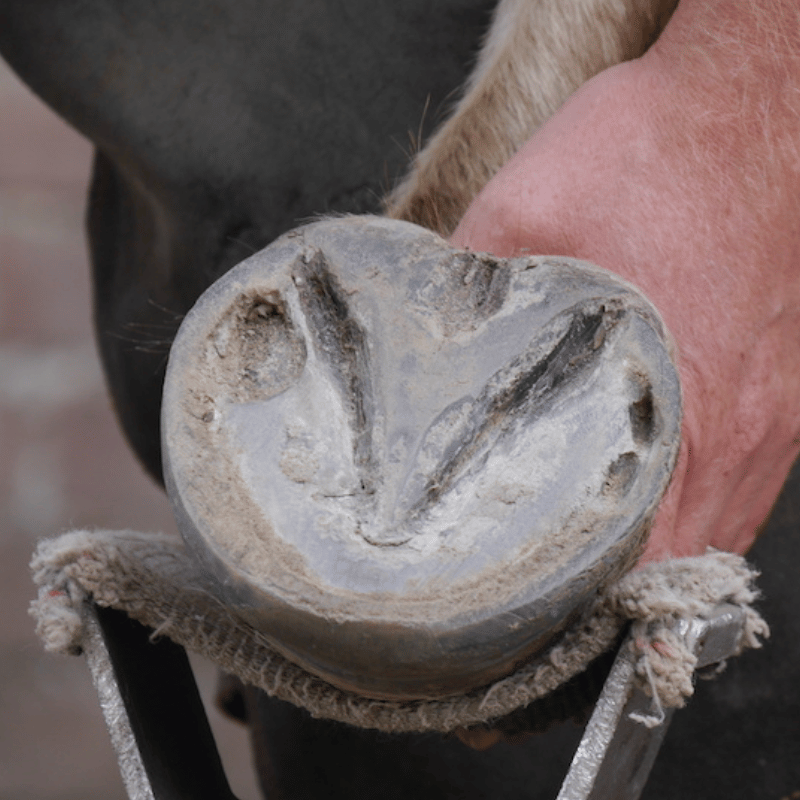 Er is een verschil tussen rotstraal behandeling en herstel. Unique horn Magic Hoof Powder behandeld in 4-7 dagen, na welke je geen zwarte nattige drab meer moet kunnen waarnemen. Doe daarvoor de hoevenkrabber test: duw de hoevenkrabber in het geïnfecteerde gebied en wanneer je hem eruit haalt moet hij schoon en droog zijn. Als dat zo is, is dat het bewijs dat de bacteriën niet meer actief zijn. Ondertussen, vooral in hardnekkige gevallen, is het belangijk dat je Unique horn Magic Hoof Powder blijft gebruiken terwijl het herstel plaatsvindt. Het is belangrijk te begrijpen dat een paard gevoelig is voor her- besmetting tot de hoefballen weer gesloten zijn en er gezond weefsel is teruggegroeid. Afhankelijk van de schade aangebracht door de rotstraal bacteriën tijdens de maanden/jaren van rotstraal, duurt het een aantal weken tot volledig herstel heeft plaatsgevonden. Lees hier een onafhankelijk onderzoek met resultaten
