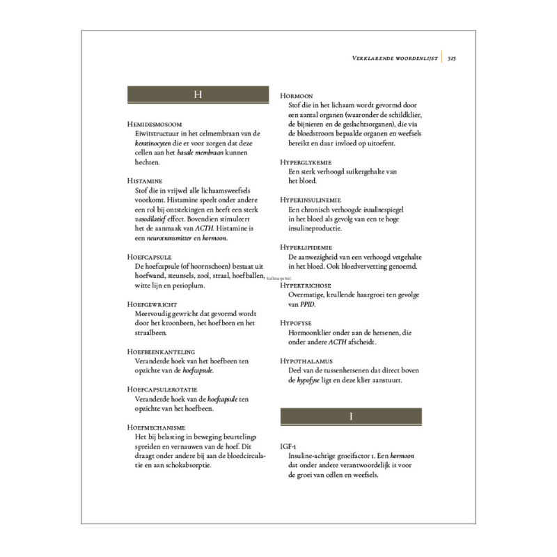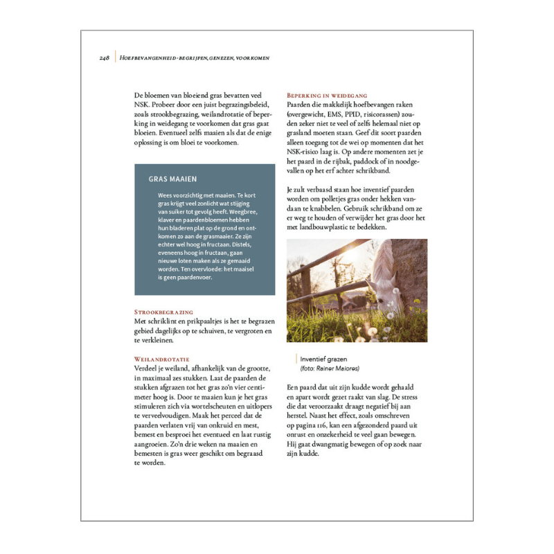 In addition to a great deal of information, it contains an extensive glossary, an overview of all plants and trees that play a role in laminitis in one way or another and a questionnaire that you can complete together with your hoof care professional to get as complete and objective a picture as possible of the condition of your horse.