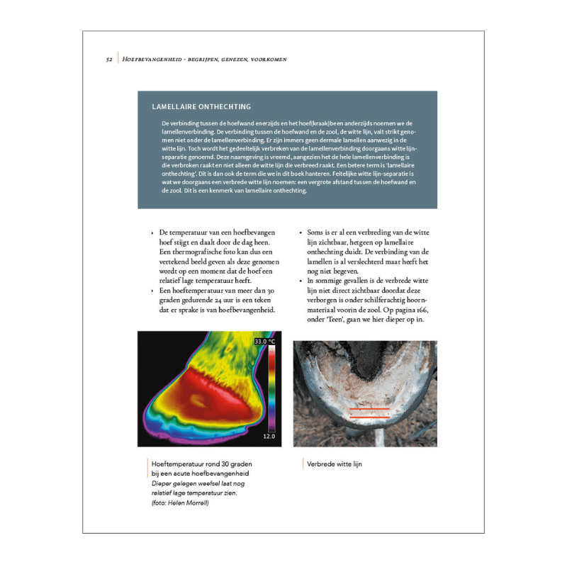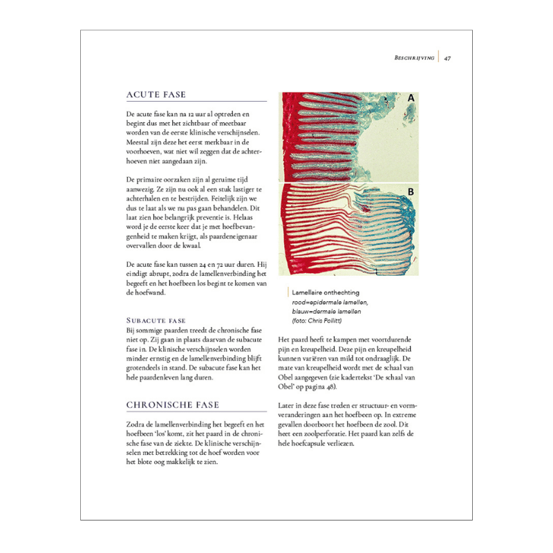 Early intervention can prevent a lot of suffering. This book explains exactly and extensively what happens in the horse's body, both just before and during laminitis. The latest scientific findings regarding sugars, hormones, medicines, underlying diseases (such as PPID), treatment methods, toxins and stress are all discussed in detail. The same applies to the crucial importance of good, natural nutrition, housing, exercise and correct hoof care.